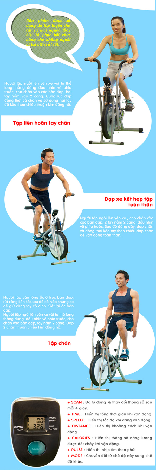 2. Một số bài tập với xe đạp tập MO 2060